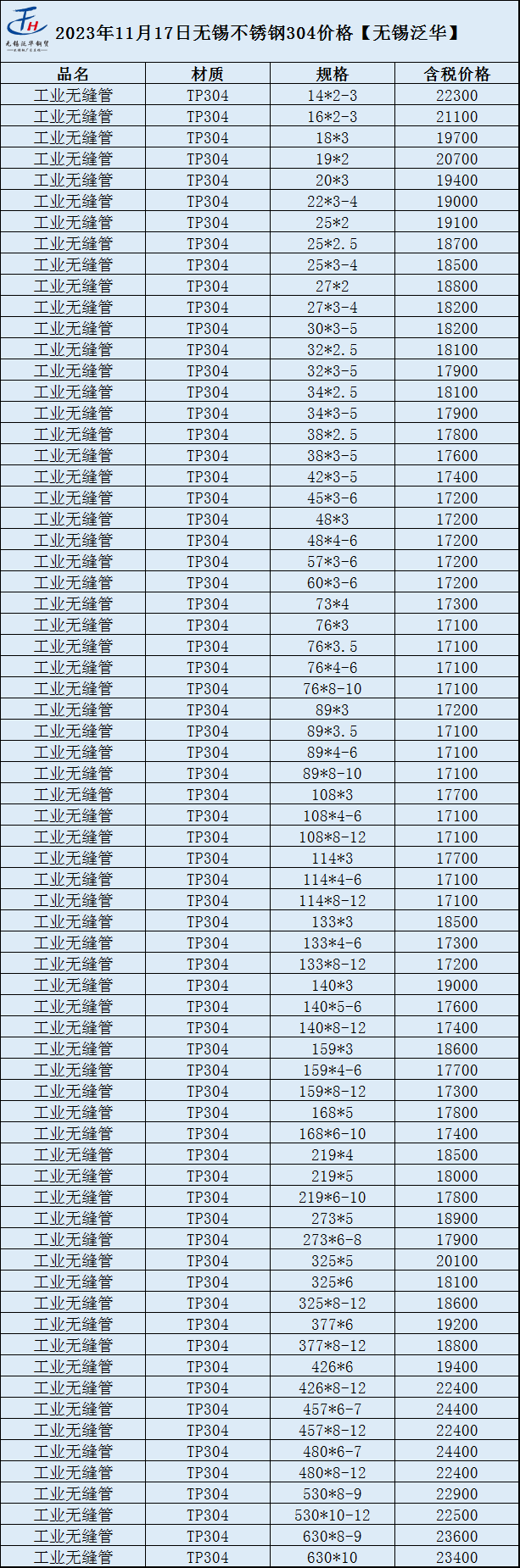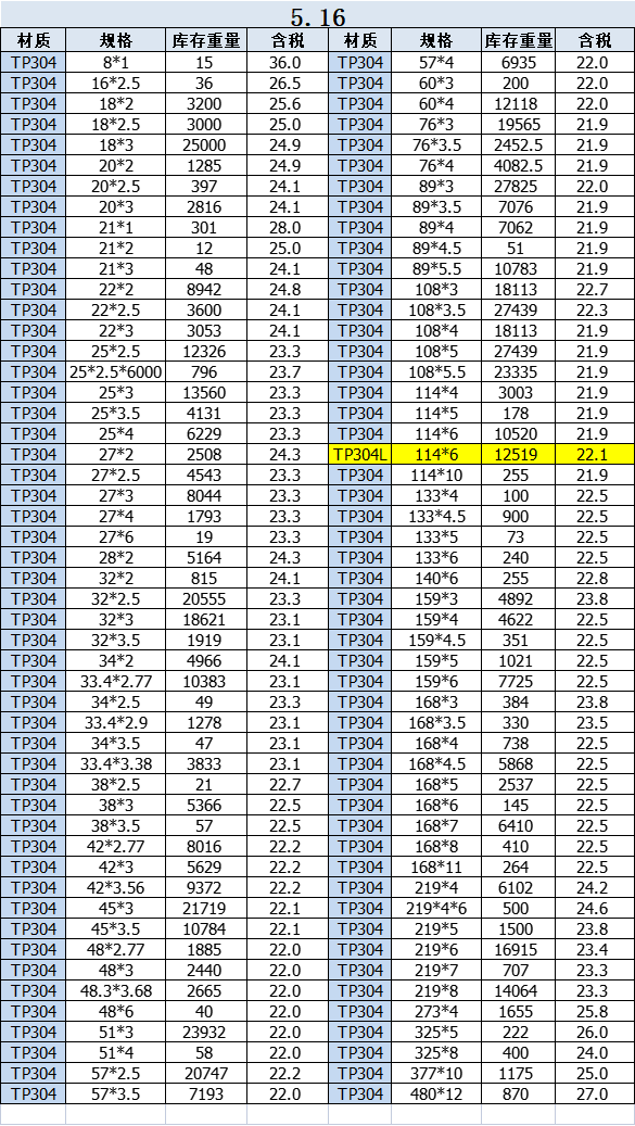 最新不锈钢管304价格表
