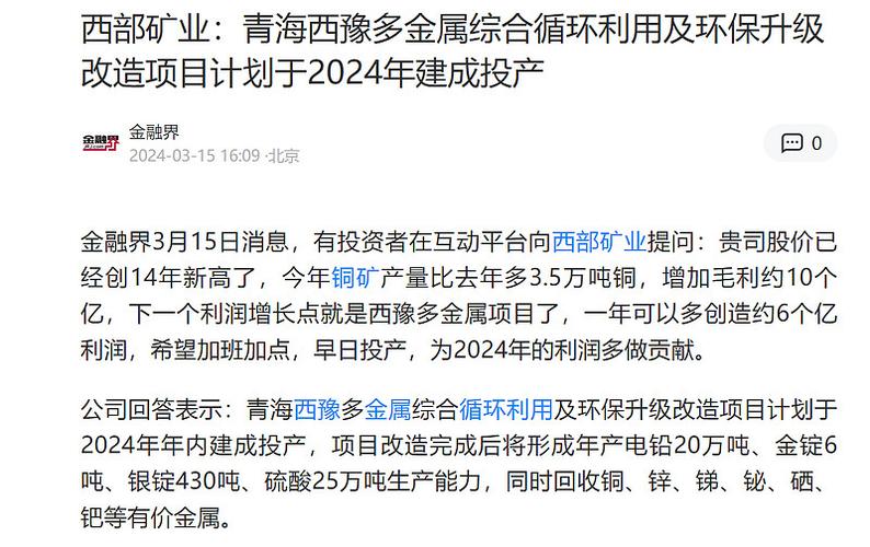 西部矿业最新动态更新,西部矿业最新消息汇总