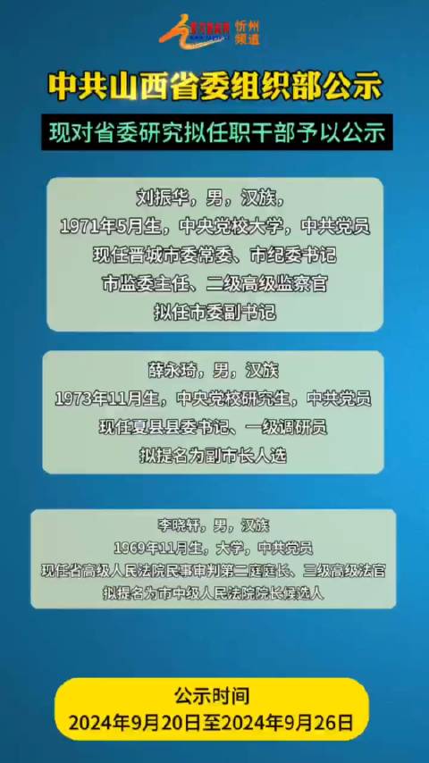 尊敬的读者朋友们,您好!今天我们将聚焦于一份备受瞩目的公告——山西干部最新公示名录,这份公示名录为我们呈现了山西省干部队伍的最新动态,我将对其进行详细的介绍和解读。