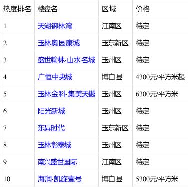 玉林房产最新价格分析